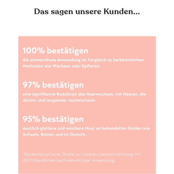 Sichtbar weniger Haarwachstum ab der ersten Anwendung.